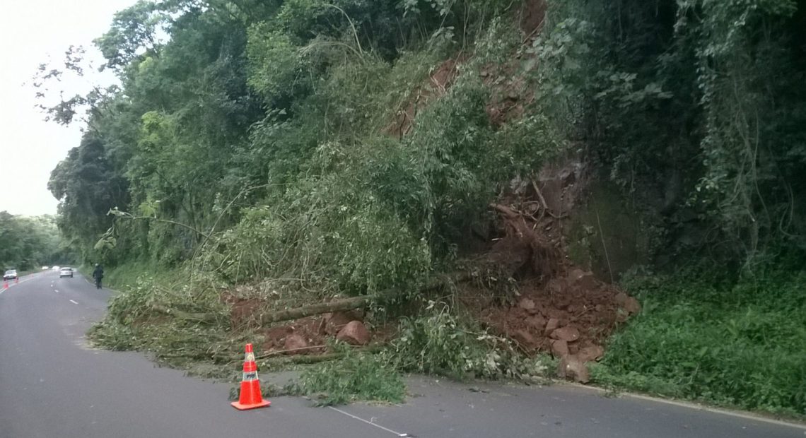 Uma queda de barreira deixou a BR-282 em meia pista em Joaçaba. O deslizamento aconteceu nas proximidades do trevo do Chocodinho. A barreira prejudica e requer atenção dos motoristas que trafegam no sentido Catanduvas. Os entulhos deverão ser removidos nesta segunda-feira