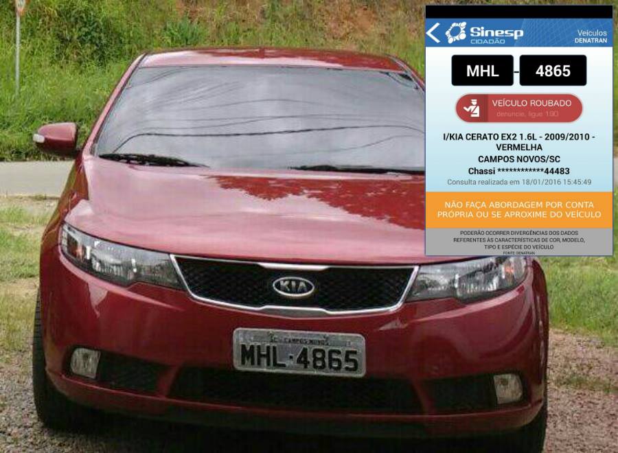 Está circulando no WhatsApp uma foto de um veículo Kia Cerato 2011 placas MHL 4865 de Campos Novos que foi furtado neste domingo, 17 de janeiro, na rua 242 em Meia Praia, Itapema.