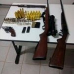 No imóvel do casal os policiais apreenderam três armas de fogo, sendo uma carabina cal. .20, com uma carabina cal. .22, um revólver cal. .38, marca Taurus contendo suas respectivas munições intactas: 14 munições cal. .38, 42 munições cal. .22, além de dois carregadores cal. .22, 44 ponteiras de espoleta para recarga e uma ponteira de espingarda de pressão 4.5.