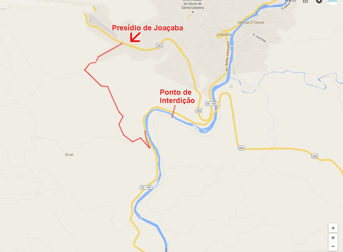 mapaCom a interdição da SC-150 entre Joaçaba e Lacerdópolis uma das principais opções de desvio é pelo interior do município de Joaçaba. O acesso ao desvio é pelo Clube Bom Humor passando pela comunidade de Santo Antônio do Caraguatá e Santa Clara (veja mapa). O trajeto de estrada de chão é de aproximadamente 8km e exige muita atenção por parte dos motoristas já que a estrada vicinal é estreita, apresenta problemas de trafegabilidade e o fluxo de veículo aumentou muito nas últimas horas. O acesso de quem vai de Joaçaba para Lacerdópolis fica ao lado do Presídio Regional. Mesmo nem sendo recomendado o trânsito para caminhões, alguns motoristas insistem o que torna o desvio ainda mais complicado.