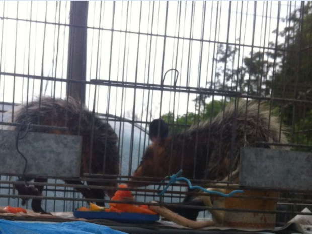 Ainda segundo a Polícia Militar Ambiental, os dois animais vivos estavam dentro de um freezer desativado e fechado. Há indícios de que os animais eram deixados ali e morriam asfixiados, segundo informações da polícia. Um deles estava debilitado. Eles foram levados para o Parque Estadual do Rio Vermelho.