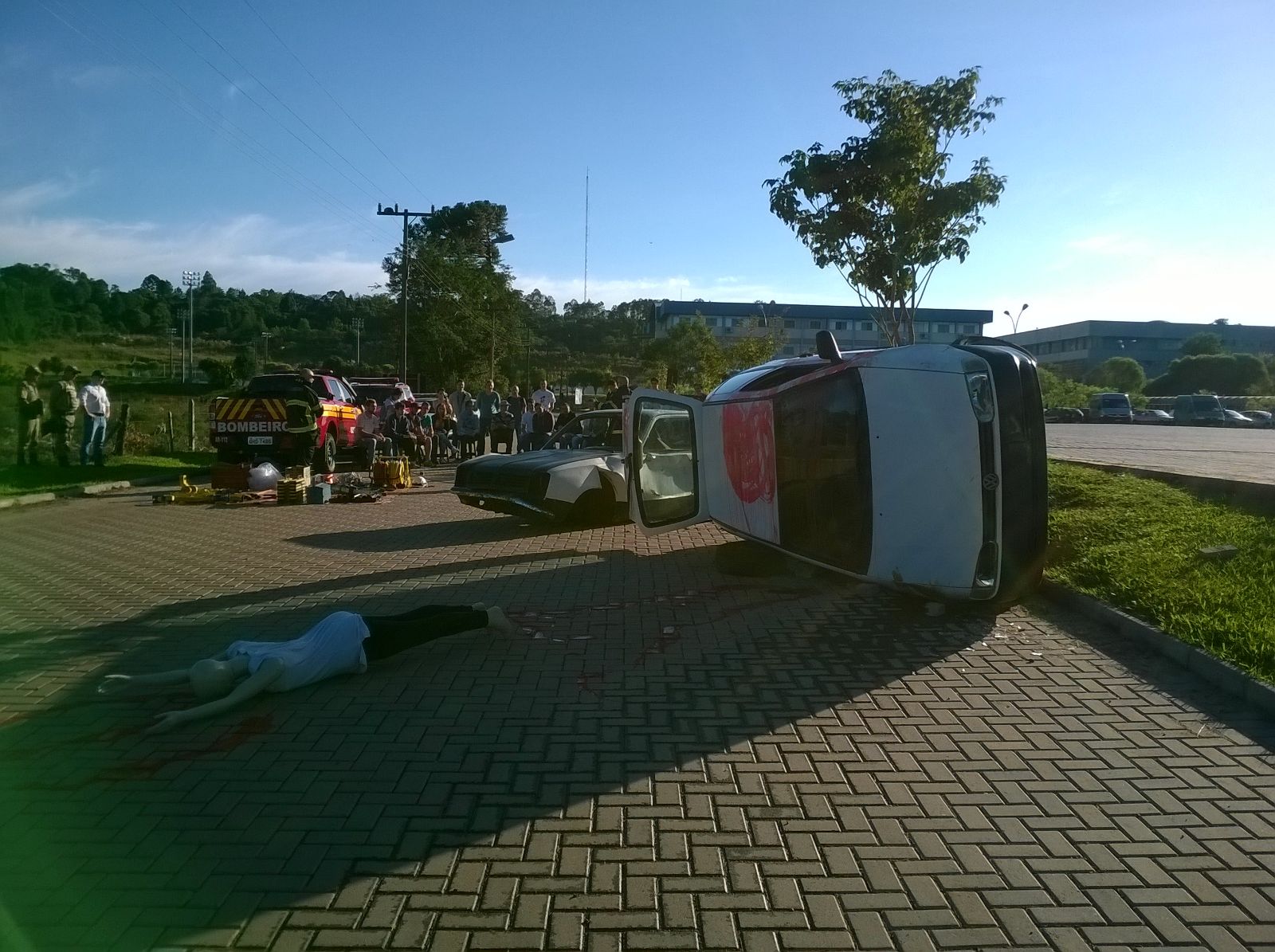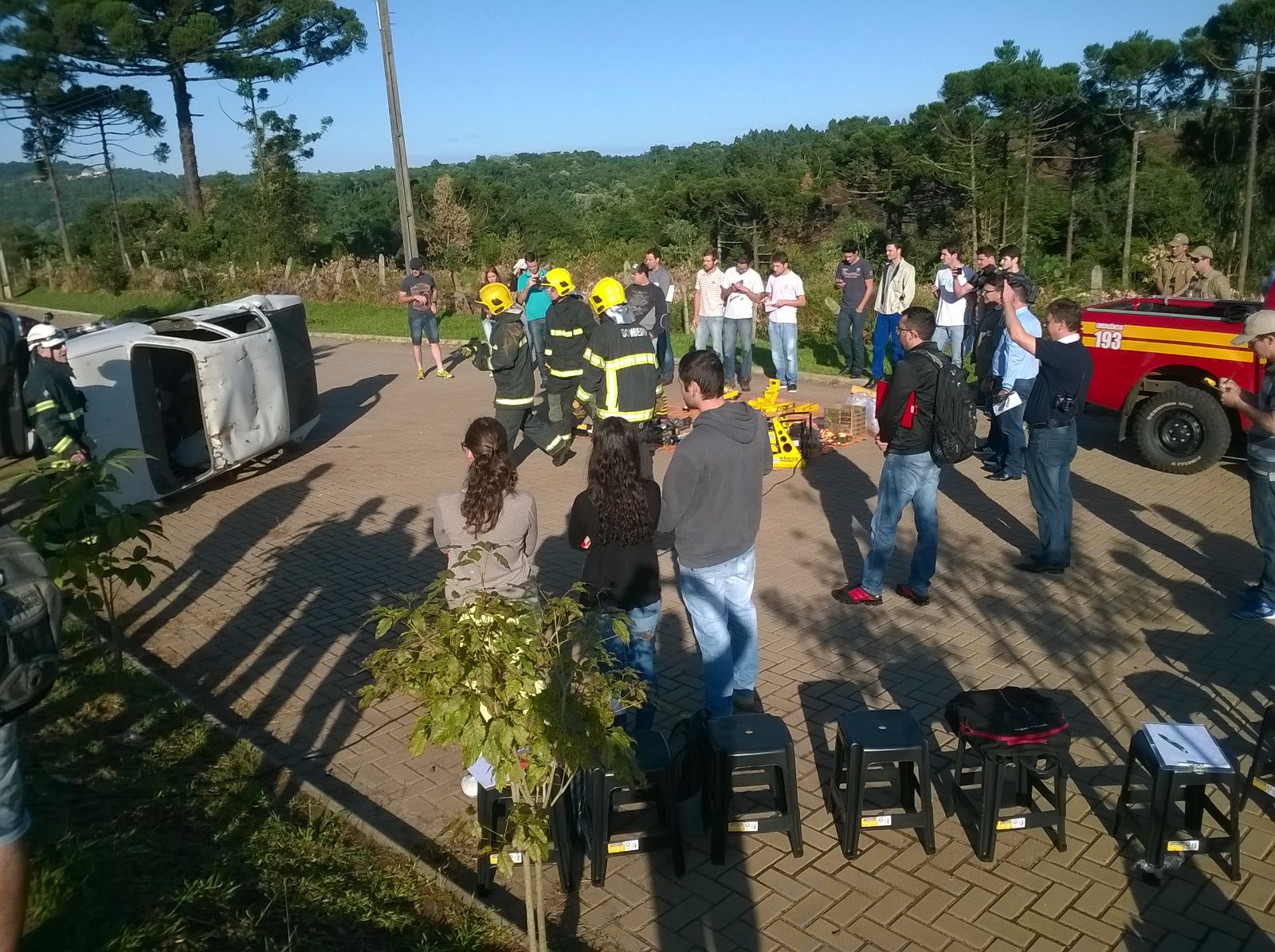 Alunos de Engenharia Mecânica da UNOESC participam de simulação de acidente