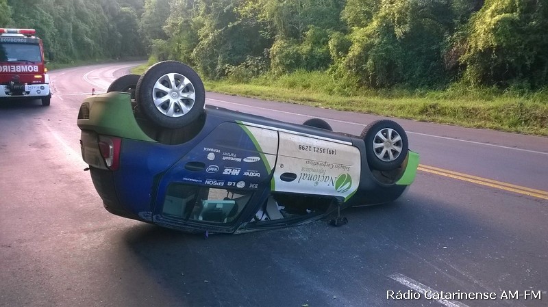 Capotamento de veículo na BR-282 em Herval d´Oeste