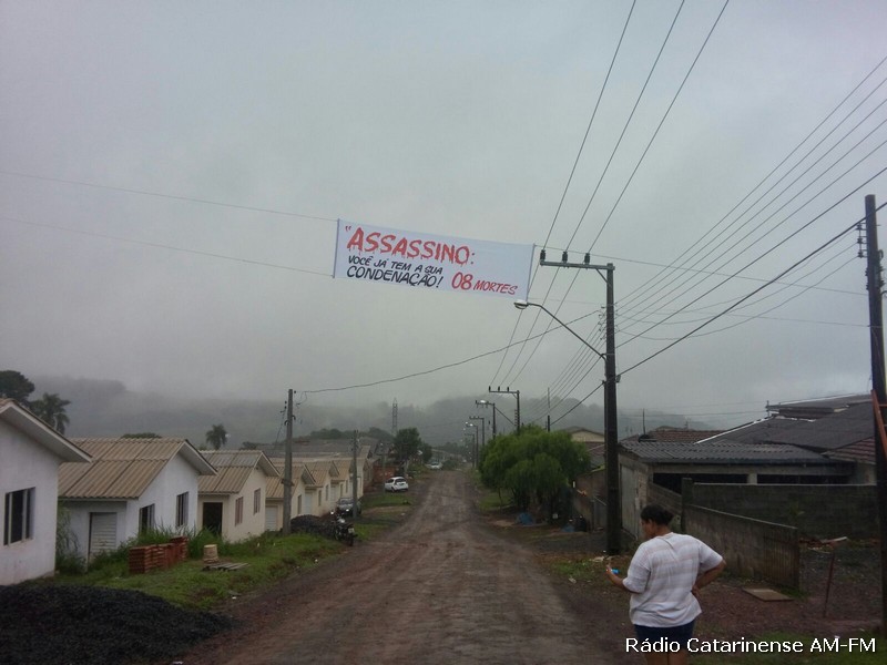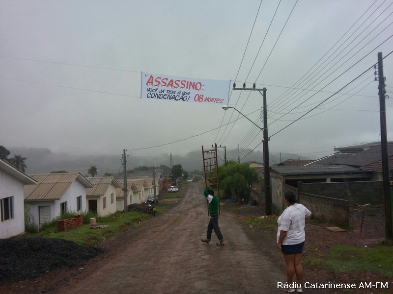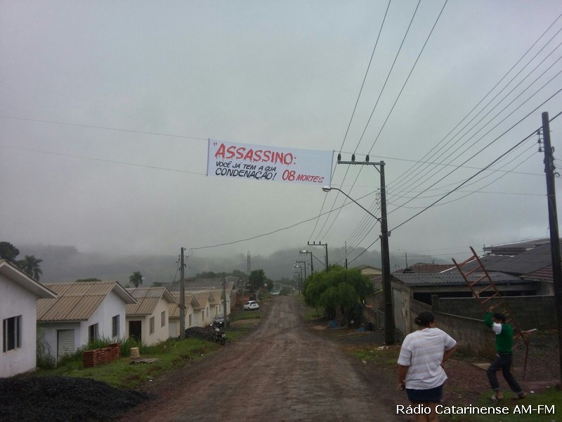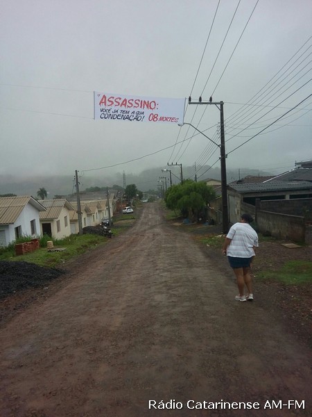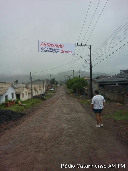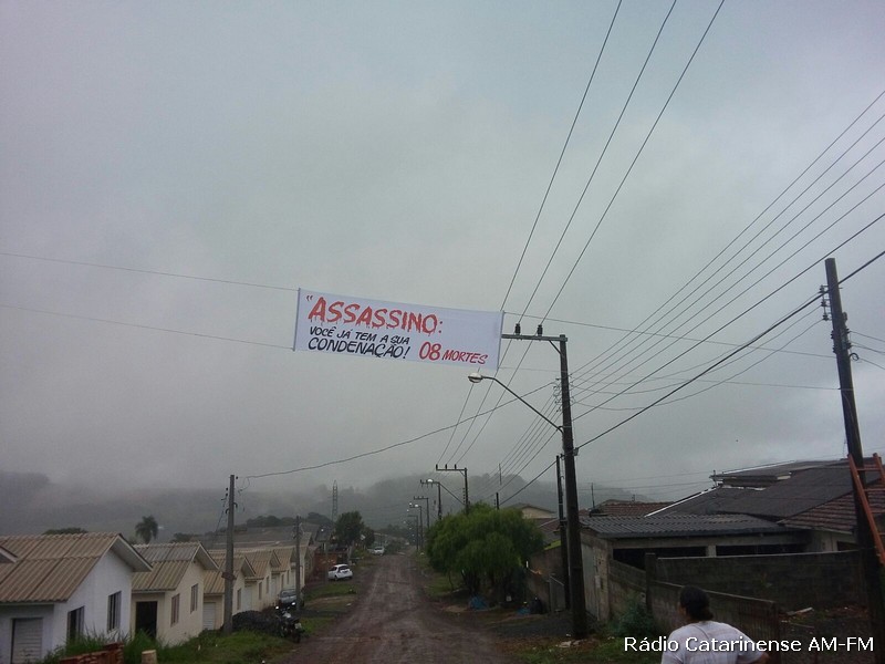 A faixa colocada nesta manhã diz: ““Assassino: você já tem sua condenação. 8 mortes”