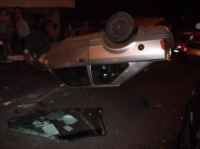 Veículo Escort que ocasionou o acidenteUm grave acidente foi registrado por volta das 21h15 deste domingo (13) na rua José Bonifácio no centro de Herval d´Oeste. O motorista do Ford Escort com placas LWT-7462 de iniciais R.J.S. que estava em alta velocidade pela via pública, perdeu o controle da direção e depois de atingir quatro carros que estavam estacionados, acabou capotando e ocasionando um grande prejuízo.