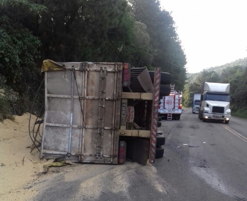 A carreta estava carregada com farelos de soja e fazia sentido Catanduvas/Vargem Bonita. A Polícia Rodoviária Federal (PRF) foi acionada para fazer o levantamento e registro da ocorrência.