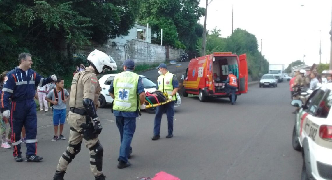 Duas pessoas feridas em acidente de carro com moto em Herval d’Oeste