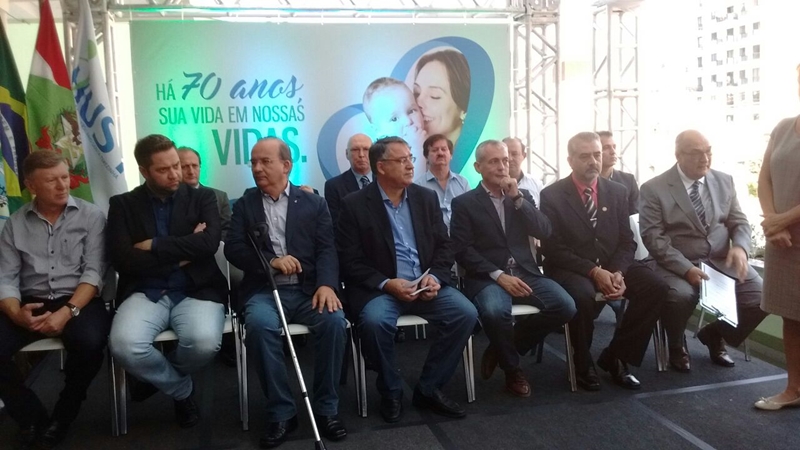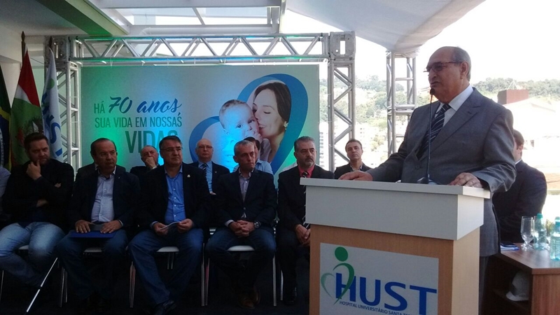 Um grande evento realizado na manhã desta sexta-feira (08) marcou a ampliação do Hospital Universitário Santa Terezinha (HUST) em Joaçaba. O ato contou com a presença do governador do Estado, Raimundo Colombo, do secretário estadual da Saúde, João Paulo Kleinubing, do secretário estadual da Defesa Civil, Milton Hobus, do deputado federal Jorginho Melllo, do prefeito em exercício Jucelino Ferraz e de outros políticos da região, além de convidados e funcionários do hospital. A revitalização e ampliação do HUST teve investimento de R$ 11,2 milhões do Governo do Estado, por meio do Fundo Estadual de Saúde.