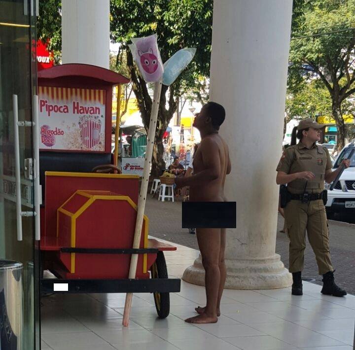 Homem é flagrado caminhando pelado pelo centro de Chapecó