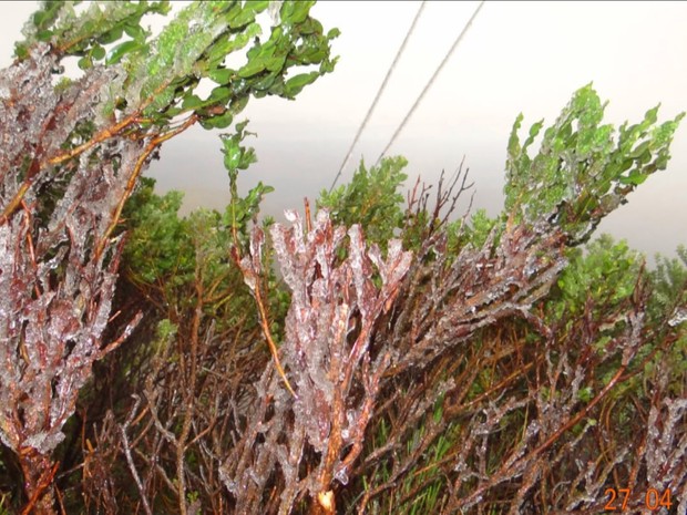 Moradores de São Joaquim, na Serra de Santa Catarina, registraram pequenos flocos de neve por volta das 20h de quarta-feira (27), segundo a Epagri/Ciram, quando a termperatura chegou a -1°C. No Morro da Antena, em Urupema, na mesma região, a temperatura chegou a -2°C até a meia-noite, com uma sensação térmica de -21°C. “O ar começou a secar, então, a neve caiu em flocos, nas áreas altas de São Joaquim. As temperaturas negativas somadas à umidade são a equação necessária para o registro de neve”, explicou a meteorologista Marilene de Lima.