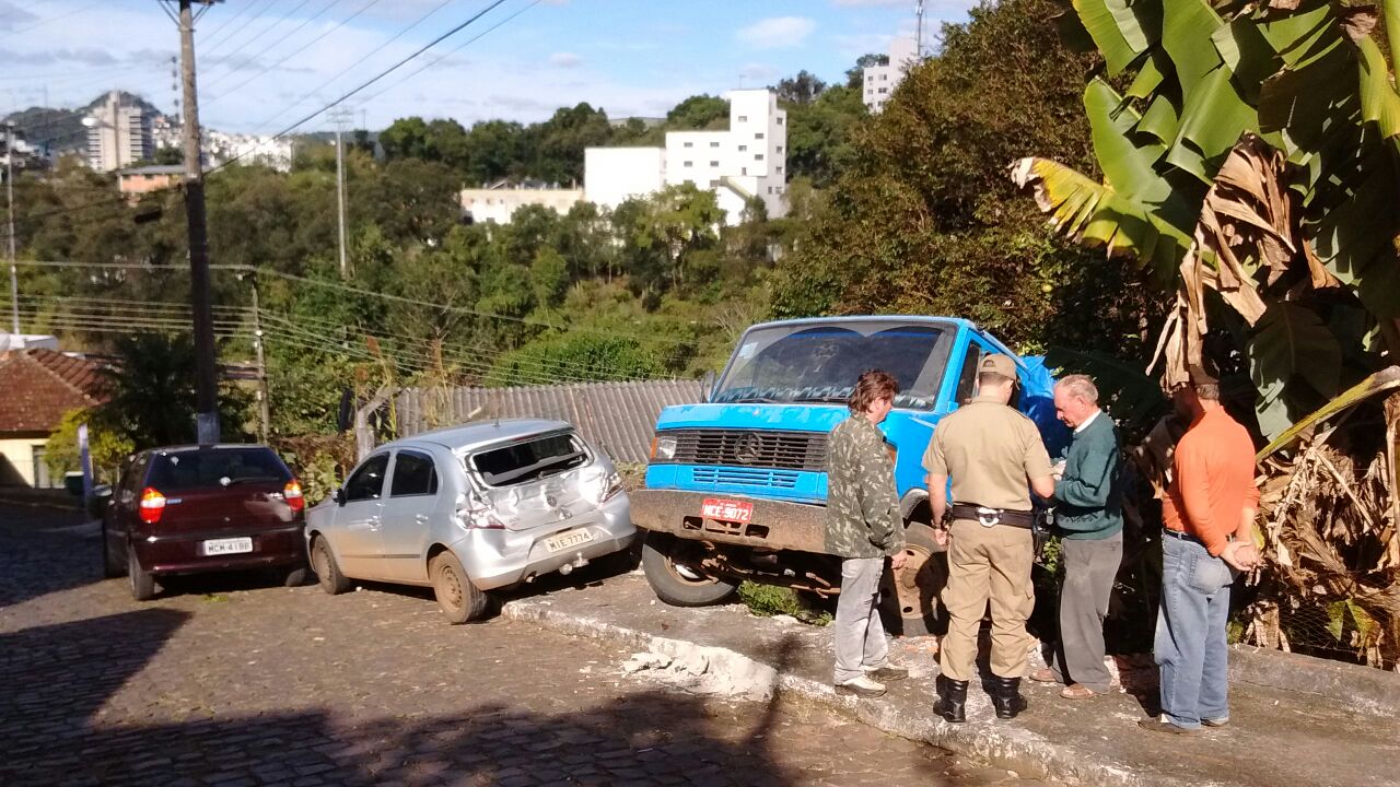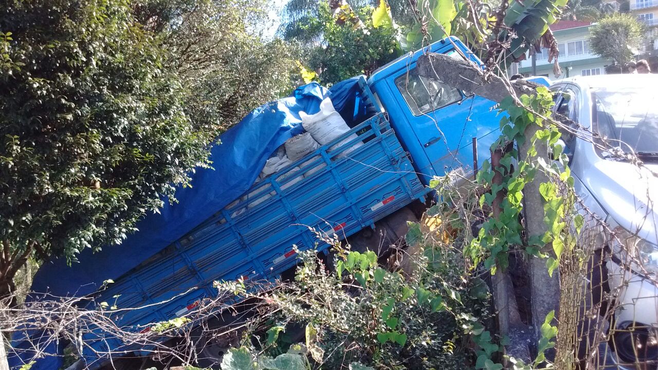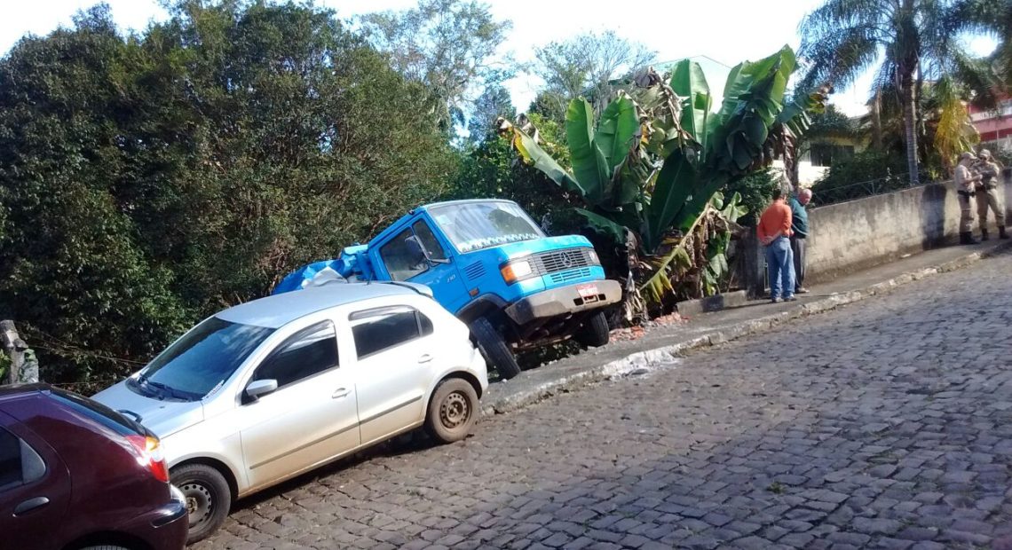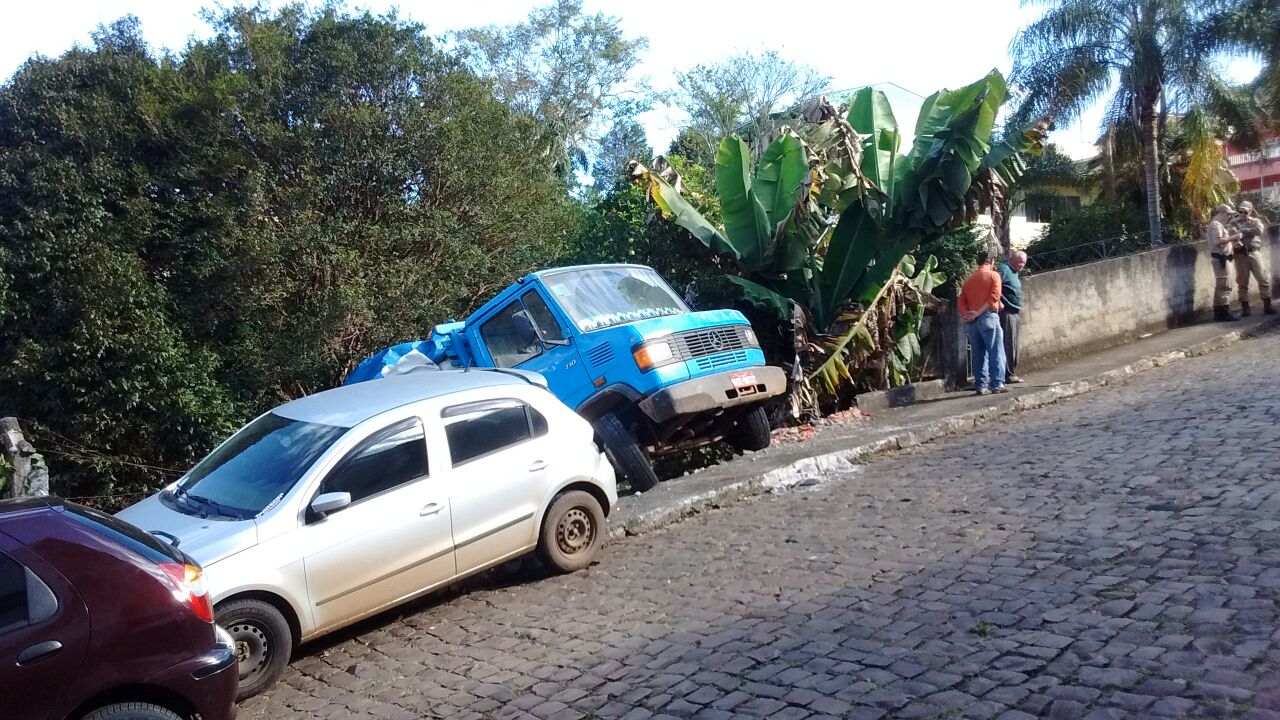 Um caminhão carregado de entulho por muito pouco não provocou uma tragédia no bairro Cruzeiro do Sul em Joaçaba. No início da tarde desta quarta-feira o caminhão subia pela rua José Caliári quando o motor apagou. O motorista de 47 anos contou a Rádio Catarinense que em seguida faltou freio e a única saída para parar o caminhão foi jogá-lo contra um muro. O veículo atingiu um gol que estava estacionado, derrubou um muro e caiu um terreno.