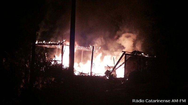 Casa é consumida pelo fogo na Estação Luzerna em Herval