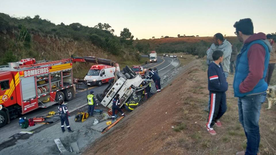 Um acidente grave na BR-282 entre Lajes e São José do Cerrito envolveu um caminhão com placas de Joaçaba. O motorista foi resgatado com vida e encaminhado para atendimento hospitalar. O caminhão fazia sentido Litoral/Oeste quando houve o tombamento. O condutor perdeu o controle em uma curva na Br-282, na localidade de Amola Faca em Lages, por volta das 16horas da tarde desta segunda-feira(13), e ficou preso nas ferragens.