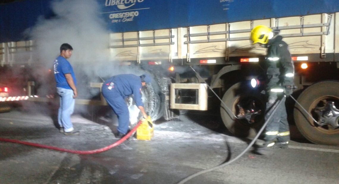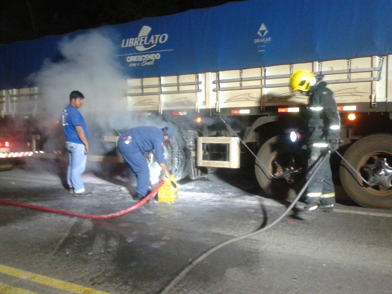 Um motorista que trafegava pela BR-282 em Joaçaba levou um grande susto no início da noite desta segunda-feira (27). Em razão do superaquecimento das lonas de freio, houve um princípio de incêndio. O motorista estacionou, e sem condições de conter o fogo, acionou o Corpo de Bombeiros. Assim que a primeira equipe chegou ao local conseguiu contornar a situação. De acordo com o Sargento Paulo Roberto foi usado produto a base de espuma para resfriar as lonas do rodado traseiro. Ele disse a Rádio Catarinense que se não fosse a intervenção rápida existia o risco da carreta pegar fogo. O trânsito chegou ficar interrompido por alguns minutos. A carreta era do Paraguai.1 2 3 4 8 9 66