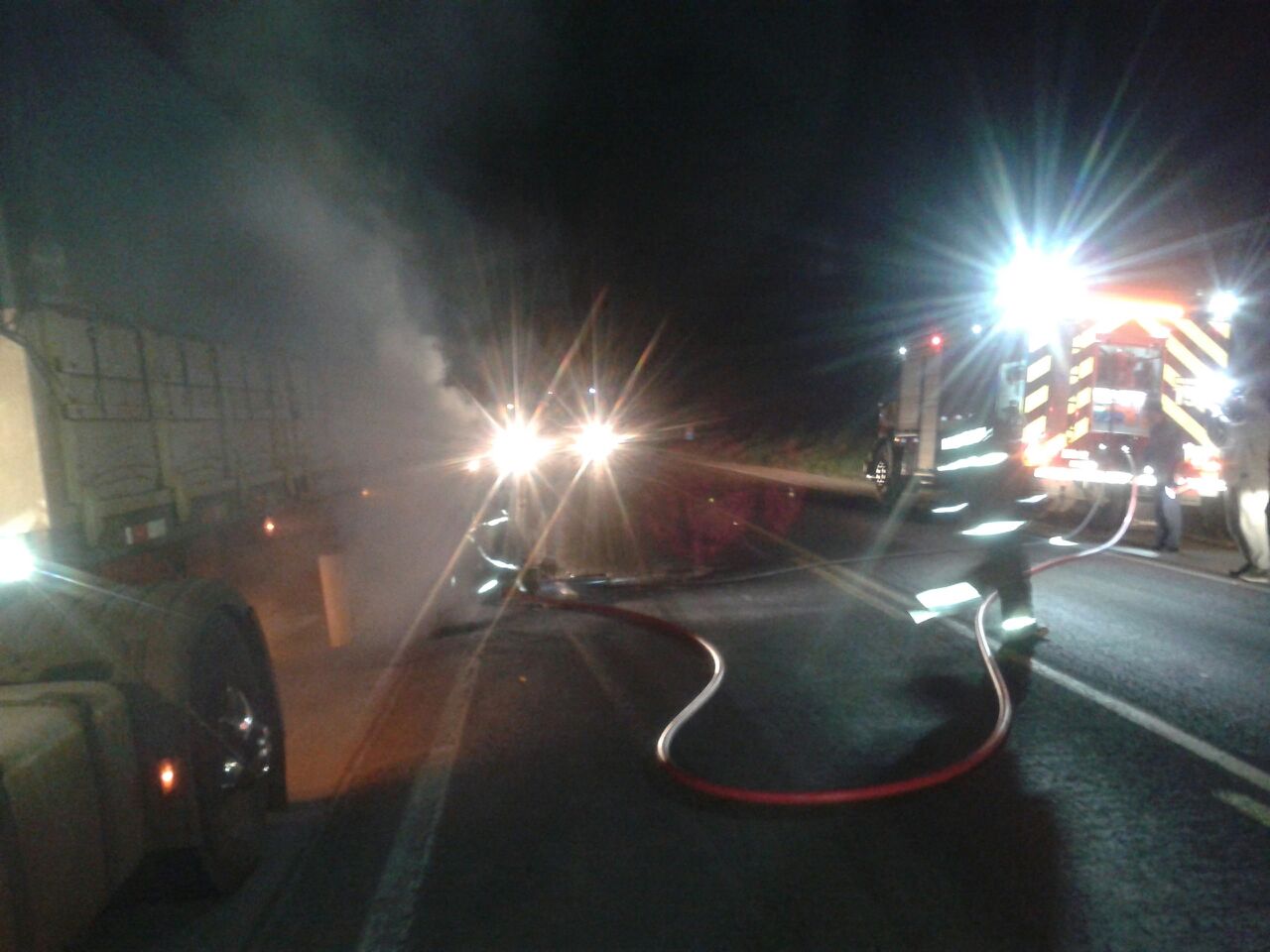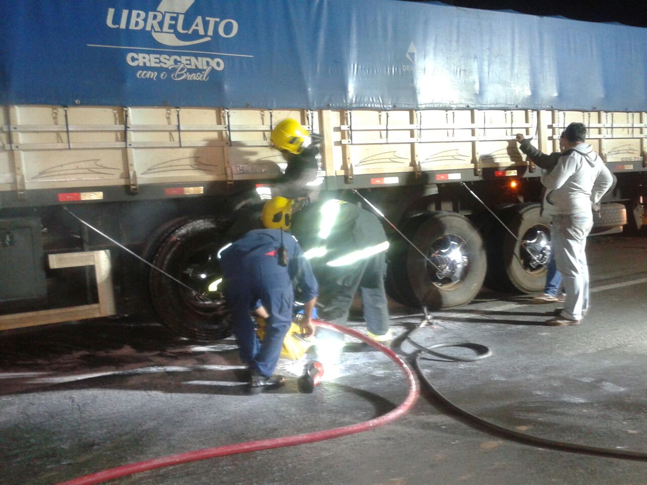 Bombeiros atendem princípio de incêndio em carreta na BR-282 em Joaçaba