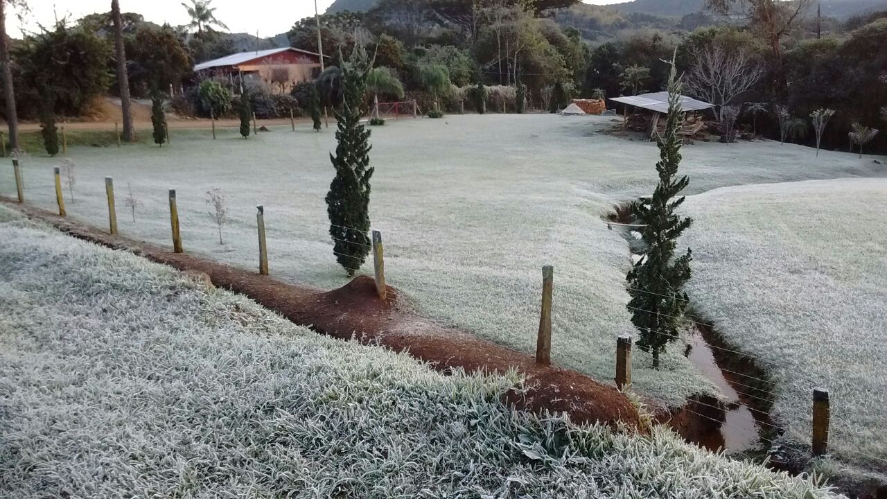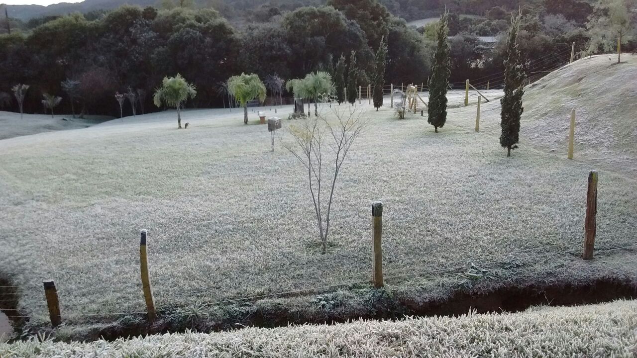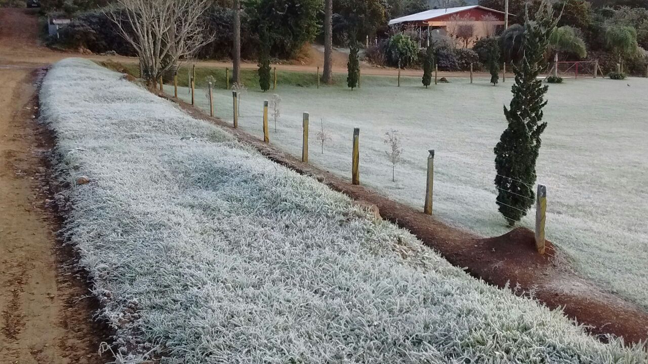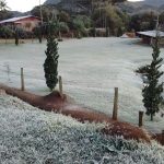 Os municípios de Joaçaba e da região Meio-Oeste amanheceram com uma fina camada de gelo e com temperaturas abaixo de zero. As previsões dos meteorologistas se confirmaram e as temperaturas despencaram mais ainda, com a quinta-feira sendo considerada o dia mais frio dos últimos anos. Os repórteres Paulo César (PC) e Julnei Bruno acordaram cedo e percorreram algumas comunidades do interior de Joaçaba e Herval d’Oeste. Conforme mostram as fotos abaixo eles encontraram pelo caminho gramados transformados pela camada de gelo, criada com a formação de geada intensa em vários locais. As fotos foram feitas na região de Serra Alta (Herval) e no Distrito de Nova Petrópolis (Joaçaba). Uma paisagem típica do inverno no Sul do Brasil.
