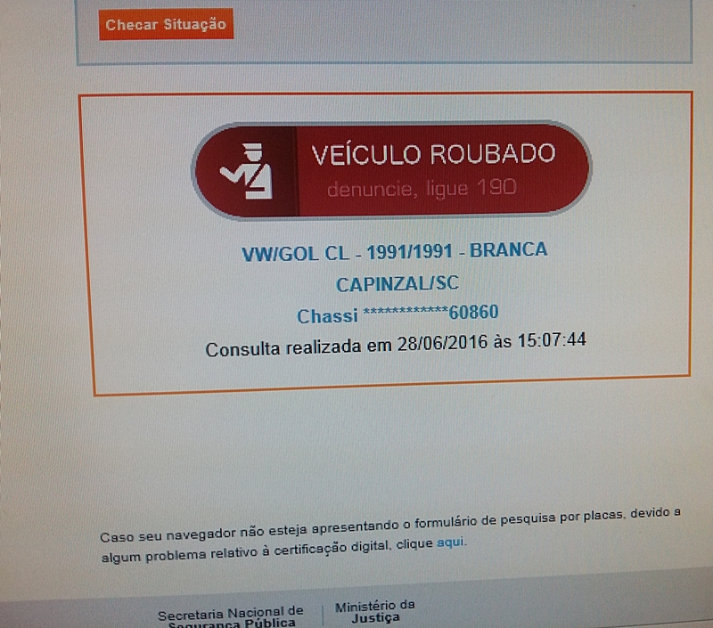 A polícia do Paraná informou que o veículo realmente pertence ao jovem de Capinzal que foi orientado a não rodar por 30 a 40 dias, até que fosse dado baixo no registro de furto.