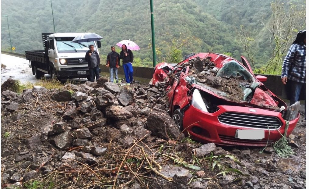 Barreira cai e destrói carro na Serra do Rio do Rastro