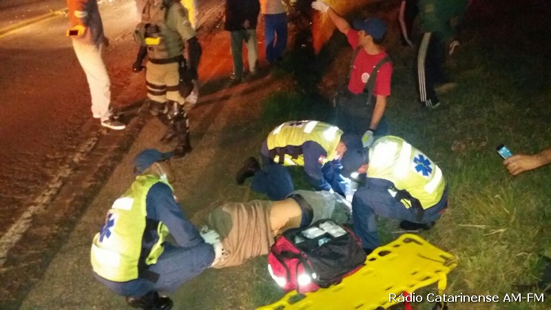 O motociclista que caiu na pista teve várias escoriações pelo corpo e reclamava de muita dor, sendo socorrido pelo Corpo de Bombeiros e encaminhado para o Hospital Universitário Santa Terezinha (HUST) em Joaçaba.