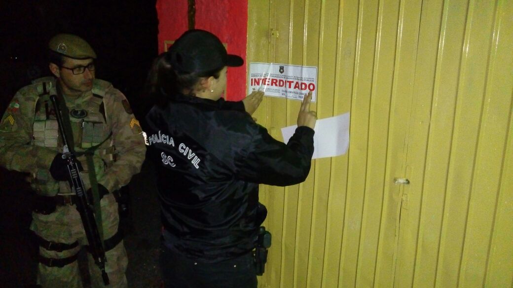A Polícia deflagrou na madrugada desta sexta-feira a “Operação Choque de Ordem”. Trata-se de uma ação conjunta e integrada das Polícias Civil e Militar que visa a repressão ao tráfico de drogas, posse/porte de armas de fogo e crimes de furto e roubo nas cidades de Capinzal e Ouro. Esta operação se estenderá até o final do ano, com incursões semanais durante os dias e as noites, inclusive nos finais de semana. Nesta primeira operação foram realizadas abordagens a bares que de forma corriqueira descumprem os horários de alvarás, alguns destes inclusive sequer dispunham de autorização para funcionamento. Um homem de 37 anos foi preso, encontrado com uma arma de fogo municiada em seu veículo, quando abordado no FETICHES BAR, na localidade de Engenho Novo, em Capinzal. Também durante as abordagens foram apreendidas quantias em dinheiro de origem suspeita na posse de indivíduos investigados, valores esses que permanecerão depositados em conta corrente do Juízo Criminal de Capinzal até que comprovem a origem lícita dos recursos. A “Operação Choque de Ordem” é coordenada pelos Delegados Daniel Régis e Deyvid Tranche (PC) e pelos Oficiais Capitão Lopes e Tenente Garcez (PM). Na ação de hoje participaram policiais civis da DIC, SIC Capinzal, das Delegacias de Ouro, Lacerdópolis, Piratuba e CRPP, além de policiais militares do PPT de Herval d’Oeste, guarnições de Joaçaba, Ouro e Capinzal.