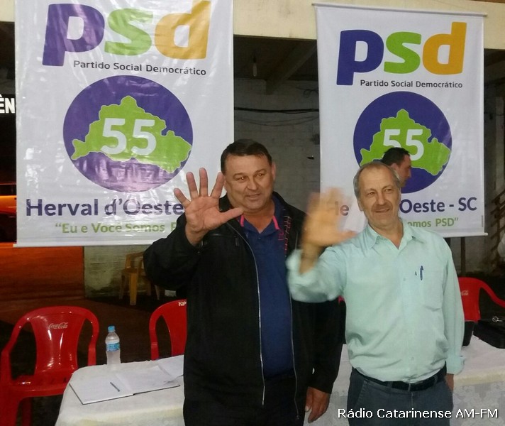 Os convencionais do PSD de Herval d´Oeste se reuniram na noite desta sexta-feira (05), para participarem da Convenção Municipal do partido que definiu no lançamento de uma chapa pura para disputar o pleito de 2 de outubro. Como já vinha sendo anunciado, o PSD resolveu apostar nos nomes de Gilmar Dri para prefeito e de Dilceo Parisenti como vice, para disputar as eleições em Herval.