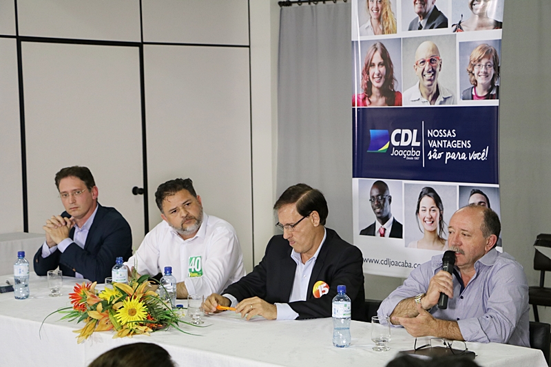 img_2778Os empresários associados da Câmara de Dirigentes Lojistas de Joaçaba (CDL) tiveram a oportunidade nesta quarta-feira (21) de conhecer as propostas dos quatro candidatos à prefeito do município, específicas para a área do comércio. A CDL promoveu um encontro com os candidatos no auditório do Hotel Jaraguá. Durante 1h30, Armindo Haro Neto, Dioclésio Ragnini, Juliano Pedrini e Marcos Weiss revelaram suas pretensões sobre diversos temas relacionados ao segmento. Questões como a possibilidade da criação dos agentes de trânsito, incentivo para as empresas, investimento na promoção de natal, distrito industrial e outros estiveram em pauta com cada candidato se posicionando conforme seus planos de governo.