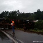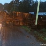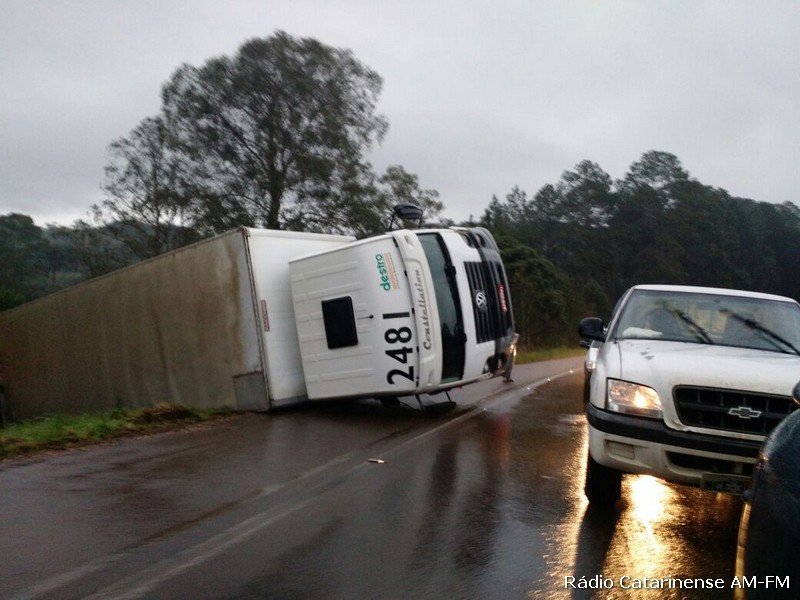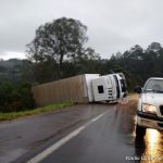 Por volta das 18h desta segunda-feira (05), um caminhão com placas de Cascavel (PR), que fazia o trajeto Jaborá/Joaçaba acabou tombando em uma curva na BR-282, proximidades do Centro de Promoções de Joaçaba (CPJ). No veículo estavam o motorista e o ajudando que nada sofreram.