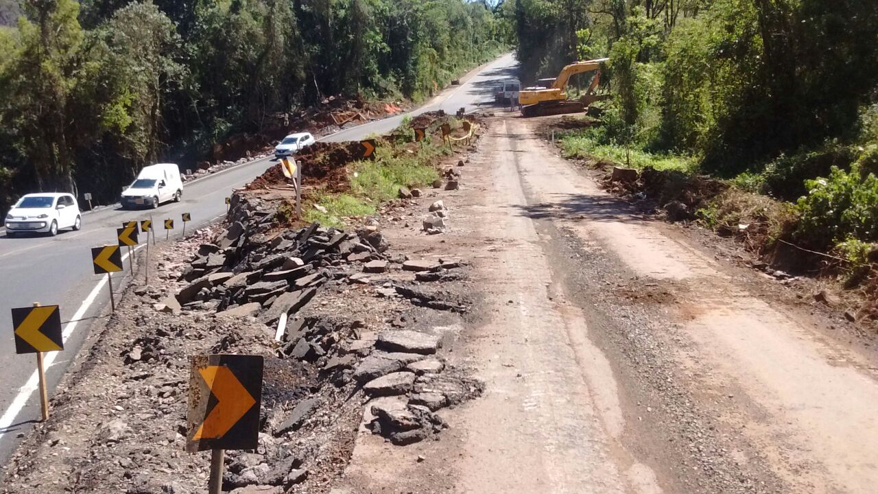 Pela importância da rodovia para a região, a Rádio Catarinense segue acompanhando de perto a recuperação do trecho que deslizou em janeiro deste ano na SC-150, na saída de Joaçaba para Lacerdópolis. No início da tarde desta terça-feira nossa equipe de reportagem esteve no local. Ao contrário do que se imaginava, poucos funcionários da empresa estavam na obra. Pelas circunstâncias é possível afirmar que os trabalhos avançam em passos lentos no local por parte da empreiteira. Já o pavimento no desvio, colocado há poucos dias, já dá sinais de que não vai aguentar o grande fluxo de veículos que passam diariamente pela SC.