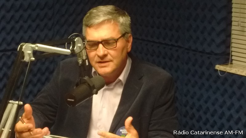 Neste espaço, o candidato falou sobre vários assuntos que integram o Plano de Governo e respondeu perguntas formuladas pelos apresentadores. Dentre elas, o recurso que está sendo reivindicado de mais de R$ 2 milhões para a comemoração do Centenário de Joaçaba no ano que vem.
