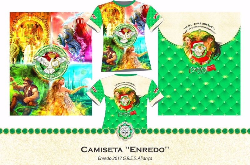 A Escola de Samba Aliança apresentou ao público, no último sábado (22), a camiseta de enredo do carnaval 2017. Em busca do pentacampeonato, a agremiação apresentará na Avenida XV de Novembro a história das pedras preciosas, em especial da esmeralda, que é a pedra verde, da cor da Escola. O enredo, idealizado por Luiz Gustavo Busetti, é intitulado “Viajei… joias busquei…com as pedras verdes sonhei!”.