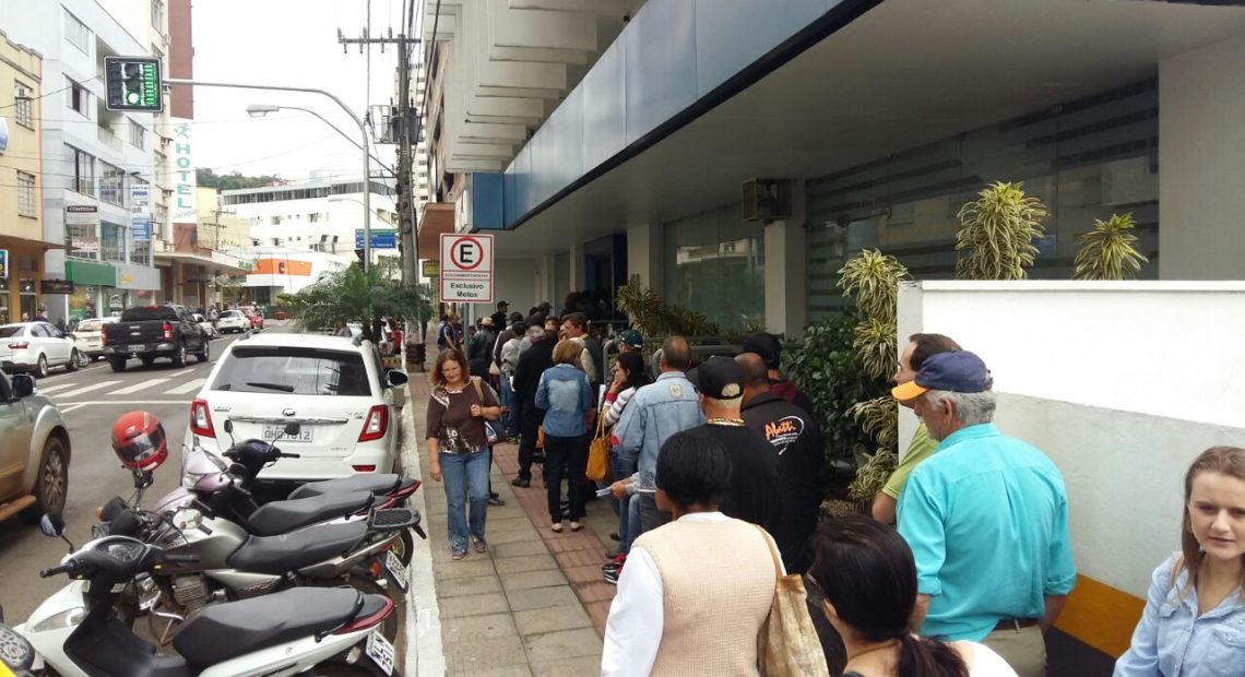 O cliente que precisar de atendimento em algumas agências bancárias de Joaçaba nesta sexta-feira (07) terá que ter muita paciência. Com o fim da greve, que durou 31 dias, as agências reabriram hoje pela manhã e terão pela frente muito serviço até conseguir atender a demanda da clientela. Por volta das 10h uma imensa fila se formava em nas imediações da Agência da Caixa Econômica Federal (CEF) na rua Sete de Setembro. Dezenas de pessoas esperando para ter acesso ao interior da agência. A fila se aproximava do Banco Bradesco.