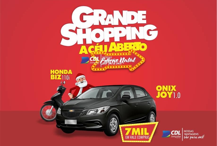 Consumidores que optarem em fazer suas compras em novembro e dezembro nas lojas de Joaçaba e Luzerna, que aderiram a promoção “Grande Shopping a Céu Aberto”, vão concorrer a R$ 50 mil em prêmios. A campanha está sendo organizada pela Câmara de Dirigentes Lojistas de Joaçaba que está cadastrando as lojas e empresas interessadas pelo fone 3522-1955.