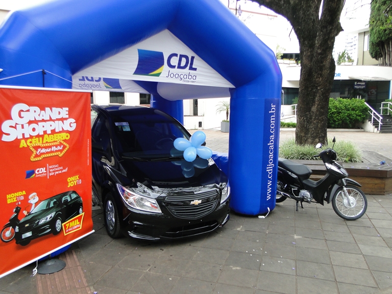 As lojas que aderiram a promoção “Grande Shopping a Céu Aberto”, que estão identificadas com cartazes, já começaram distribuir os números da sorte.A campanha está sendo organizada pela Câmara de Dirigentes Lojistas de Joaçaba e o cadastramento dos números é através da internet. Serão 4 sorteios até dezembro, tendo por base a loteria federal, nas seguintes datas: 23/11, 14/12, 21/12 e 24/12. Nos três primeiros sorteios os consumidores estarão concorrendo a vale-compras e no último a um automóvel Chevrolet Ônix Joy 0km, uma moto e mais três vale compras. No último sábado a CDL expôs os prêmios na praça em frente a prefeitura.