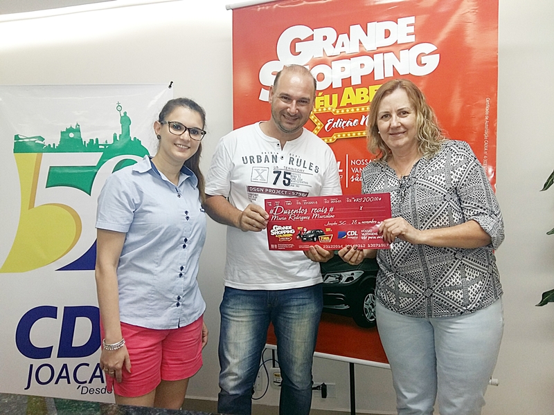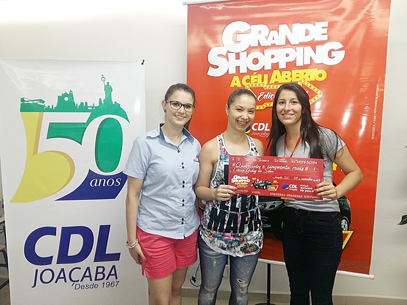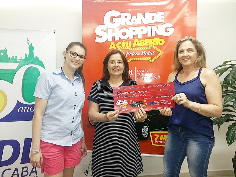 Os primeiros sorteados da promoção “Grande Shopping a Céu Aberto” receberam a premiação no início da tarde desta segunda-feira (28). O sorteio aconteceu no último dia 24 através de uma combinação dos números da Loteria Federal. Leticia Godoy da Silva (Colmeia Center) recebeu um vale compra de R$ 450,00. Deise Maria Ratico Kruhs ( Lorenci Baby) R$ 400,00, Ana Cristina Luiz Mateus ( Mercado Leão) R$ 300,00, Eliane Maristela Hebert ( Bonato) R$ 250,00 e Maria Rodrigues Marcolino (Mercado Leão) R$ 200,00. Para concorrer os próximos sorteios os consumidores devem procurar pelas lojas que aderiram a promoção e que estão identificadas com cartazes. Depois de receber os números da sorte, basta acessar o site e fazer o cadastro.
