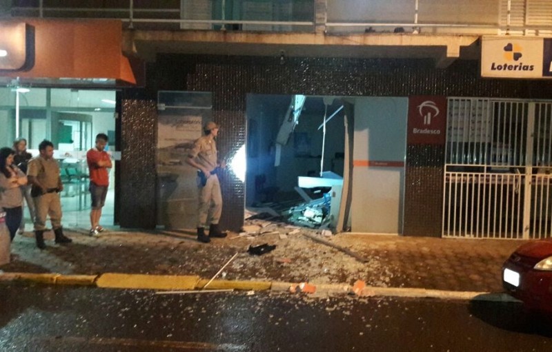 Três homens fortemente armados explodiram os caixas eletrônicos da agência do Banco Bradesco de Pinheiro Preto na madrugada desta quarta-feira (2). De acordo com informações da polícia, a ação aconteceu por volta das 3h40, quando os criminosos chegaram em um único veículo. Eles levaram uma quantia considerável de dinheiro.