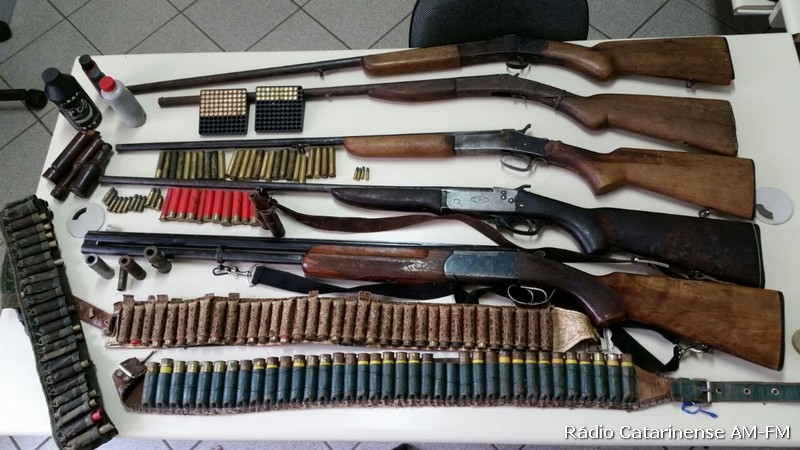 Nas buscas os policiais localizaram vários objetos de procedência duvidosa, os quais estavam escondidos no quintal do investigado. Além disso foi localizado na residência do autor, cinco armas de fogo e farta munição. No local ainda foi apreendido vários animais silvestres.
