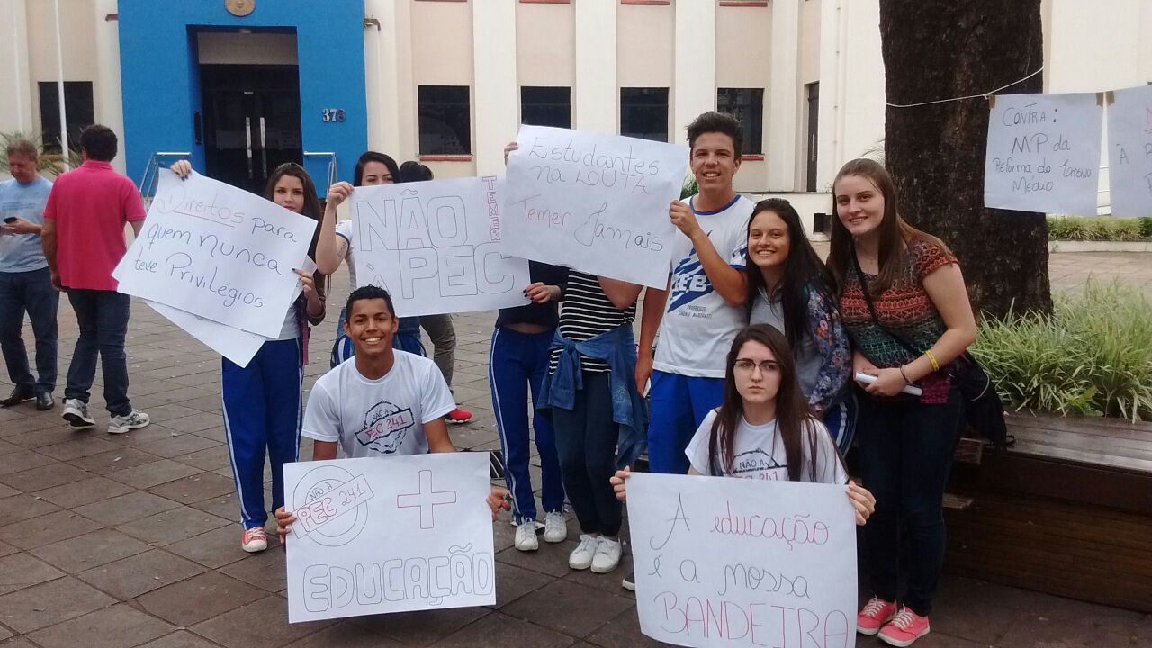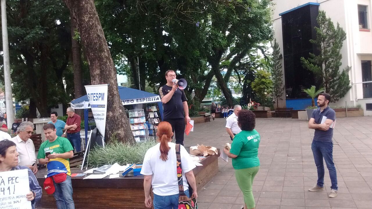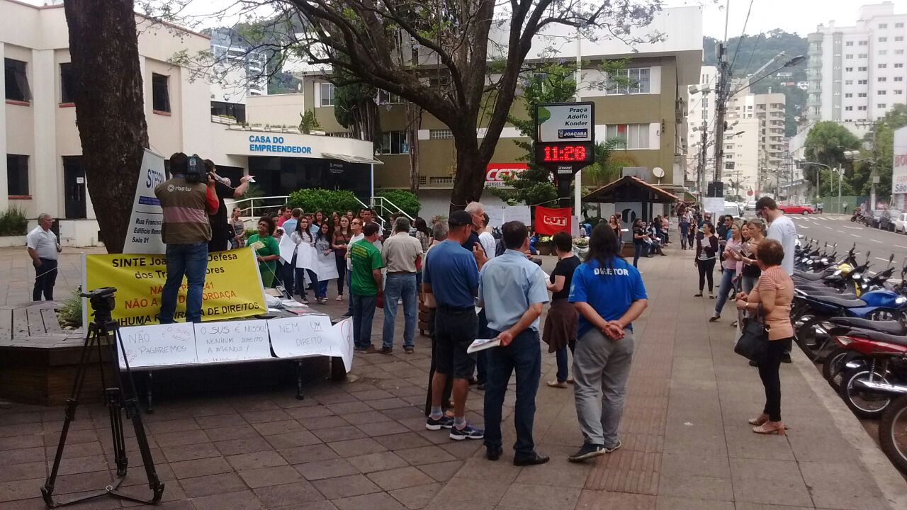 Entidades, sindicatos e demais instituições, estão realizando na manhã desta sexta-feira em Joaçaba uma mobilização contra a PEC 241. A PEC é uma das principais propostas do governo de Michel Temer para reequilibrar as contas públicas e viabilizar a recuperação da economia brasileira. Se a regra for aprovada no Congresso, os gastos públicos só poderão aumentar de acordo com a inflação do ano anterior.A premissa que orientou a criação da PEC é pôr fim à sequência de rombos nas contas públicas brasileiras. O ano de 2016 será o terceiro seguido com as contas no vermelho. Em 2014, houve um déficit de R$ 17,24 bilhões e, em 2015, um rombo recorde de R$ 114,98 bilhões. A previsão é de déficit de até R$ 170,5 bilhões em 2016 – o pior resultado da história, se confirmado. Para 2017, a estimativa é de um novo déficit fiscal, da ordem de R$ 139 bilhões, mesmo se a PEC já estiver em vigor. Com cartazes, megafones e apitos os manifestantes chamavam a atenção das pessoas que passavam pela praça Adolfo Konder.