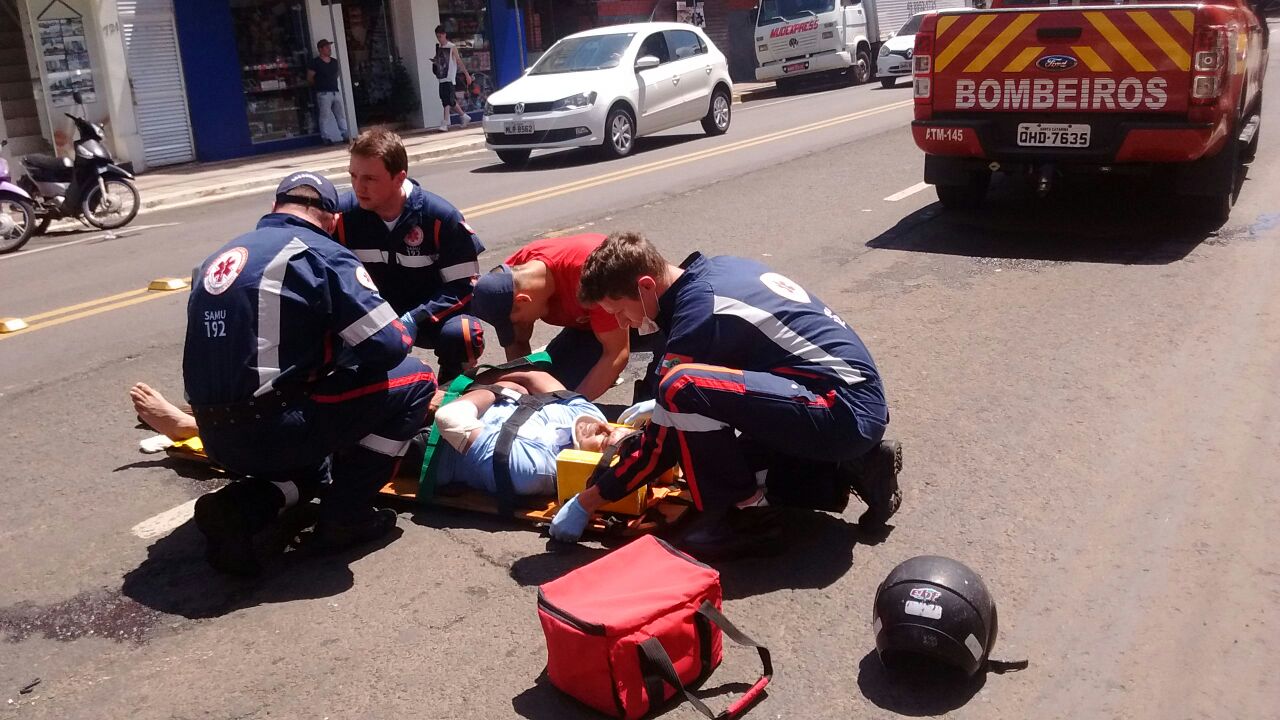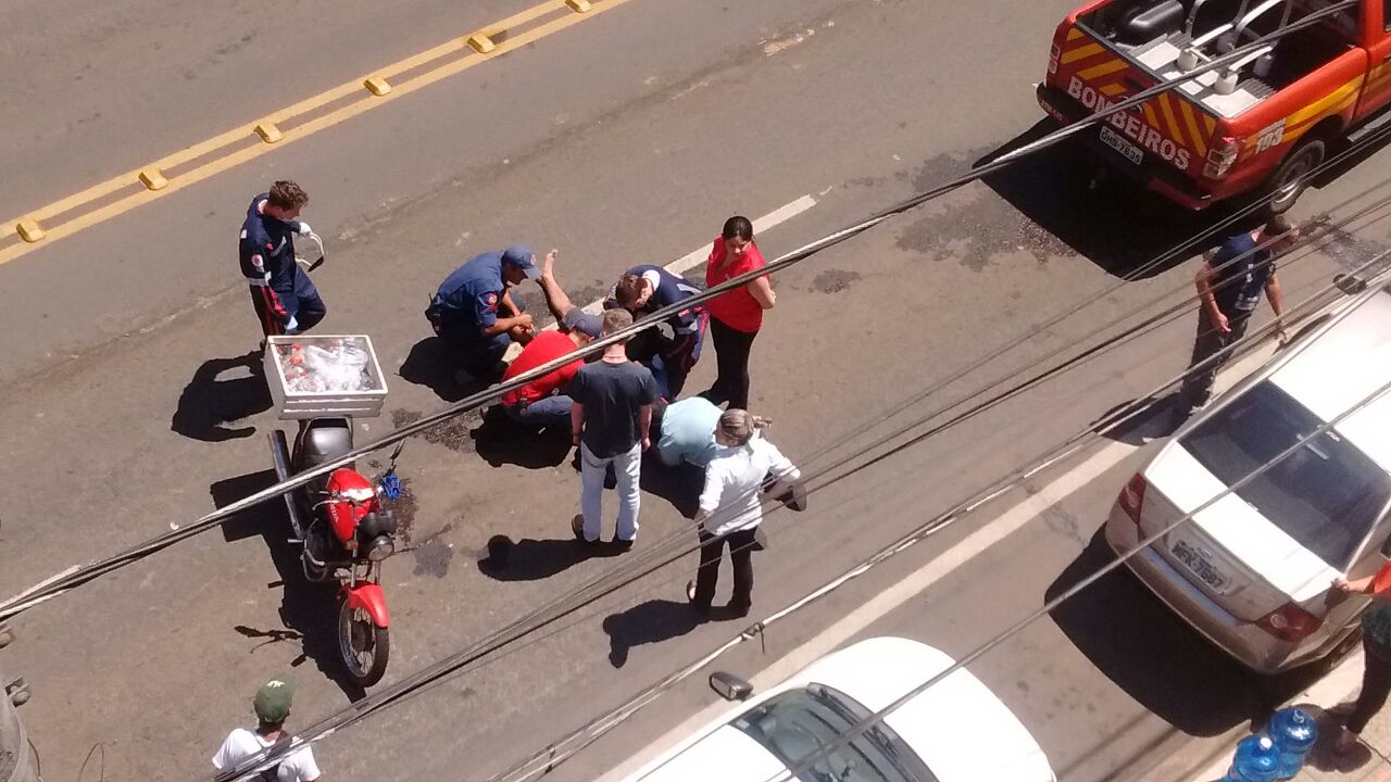 Motociclista cai na XV de Novembro ao tentar desviar de carro