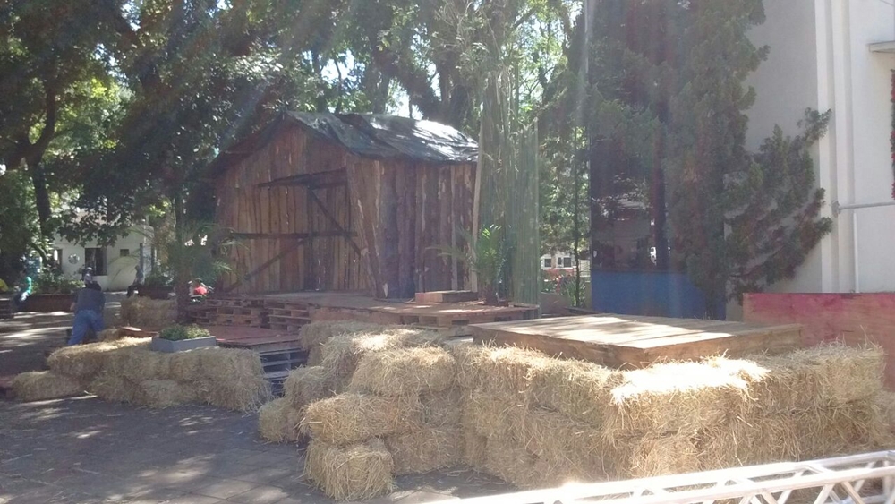 O Grupo de Teatro de Joaçaba (TEJO) foi contratado pela CDL e está implantando uma cenografia especial na praça Adolfo Konder. O artista plástico Jorge Zamoner, coordenador do TEJO, explicou que no local o público vai acontecer um presépio estático e em três datas específicas um grupo de atores vai representar fatos da época do nascimento de Cristo, encenando o texto clássico do nascimento. As apresentações vão durar cerca de 40 minutos com 15 artistas que estarão se revezando. “O Natal é uma data especial e vamos levar as pessoas, a partir destas encenações, a pensar em suas vidas e traçar um novo caminho para que vivam melhor” comentou Jorge Zamoner.
