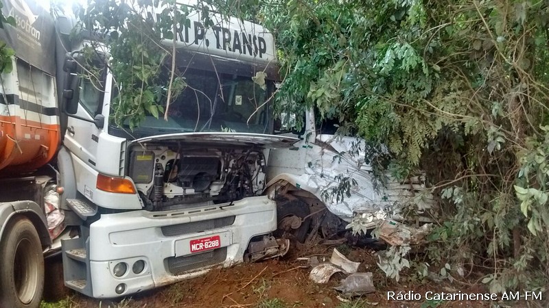Uma colisão frontal entre dois caminhões foi registrada por volta das 14h30 desta segunda-feira (07), no Km 399 da BR-282, que liga Joaçaba à Catanduvas.