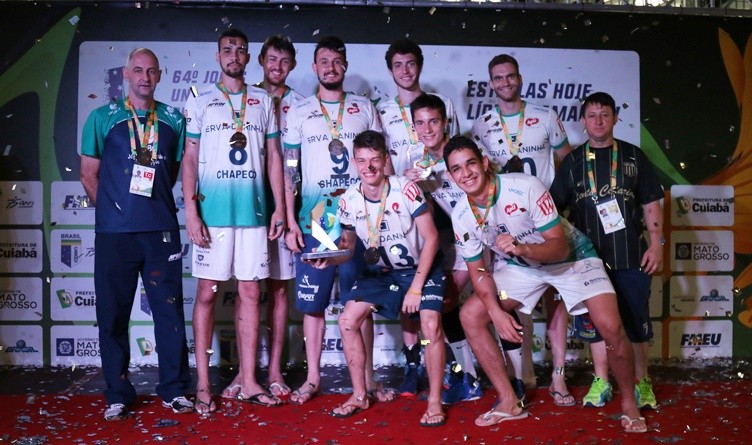 Chegar ao pódio não foi uma tarefa fácil. Teve jogo disputado, placar apertado e equipe favorita ao título. Afinal, competir na primeira divisão dos Jogos Universitários Brasileiros (JUBs) não é para qualquer time. Mesmo assim, nesta 64ª edição dos JUBs, em Cuiabá (MT), a Unoesc conquistou o bronze no basquetebol e no voleibol, e o 4º lugar no futsal.