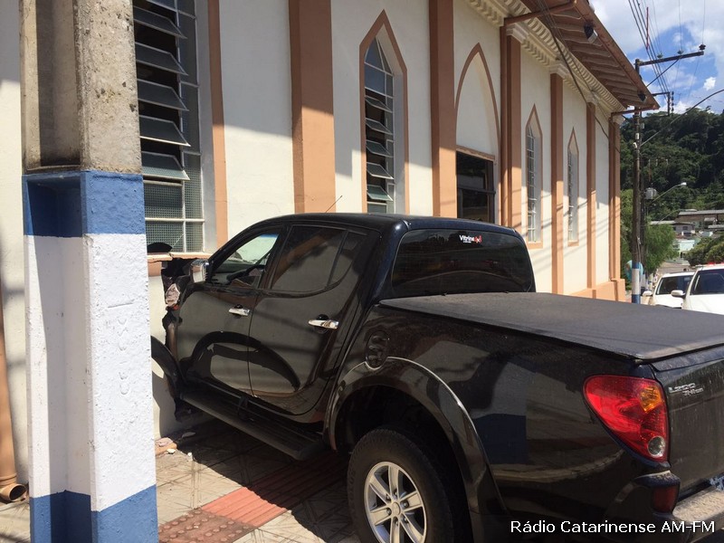 Caminhonete desgovernada atinge igreja em Lacerdópolis