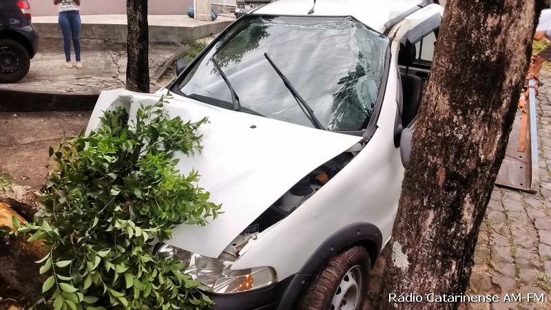 Carro sem freio atinge árvore no bairro Tobias de Joaçaba