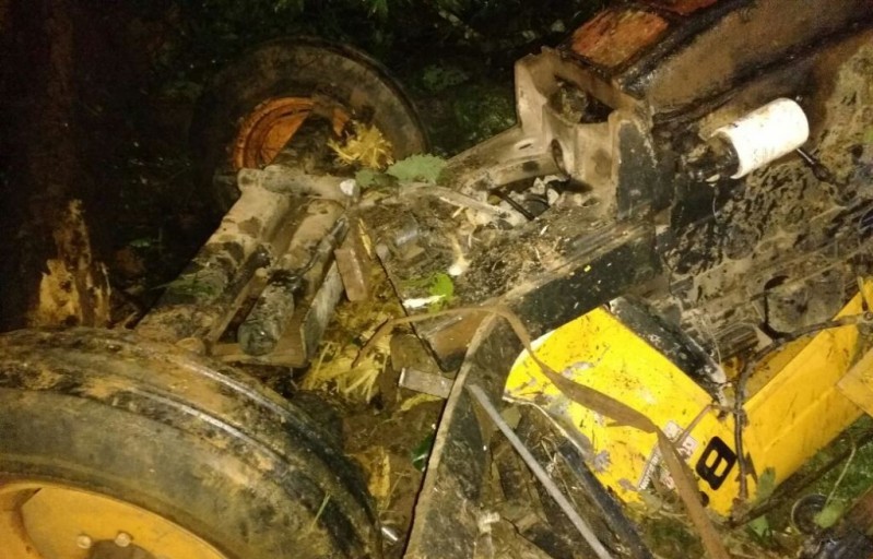O trator capotou depois de descer uma ribanceira de aproximadamente 20 metros de altura.