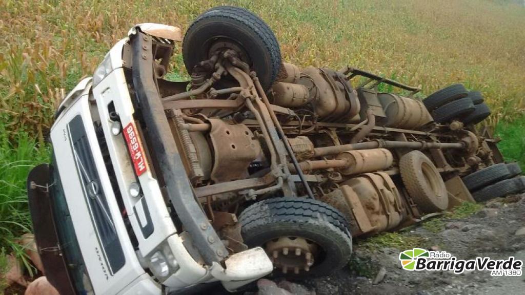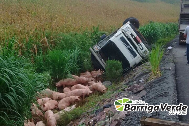 Caminhão de suínos tomba na rodovia entre Ibicaré e Tangará