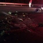 Segundo informações no local, uma motociclista de 24 anos que estava descendo o acesso teria colidido com uma árvore que estava caída na pista.
