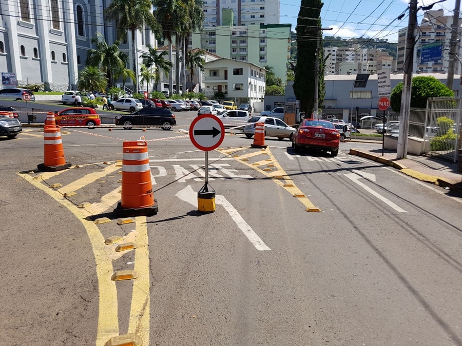 Trânsito de Joaçaba passa por mudanças em frente à Catedral