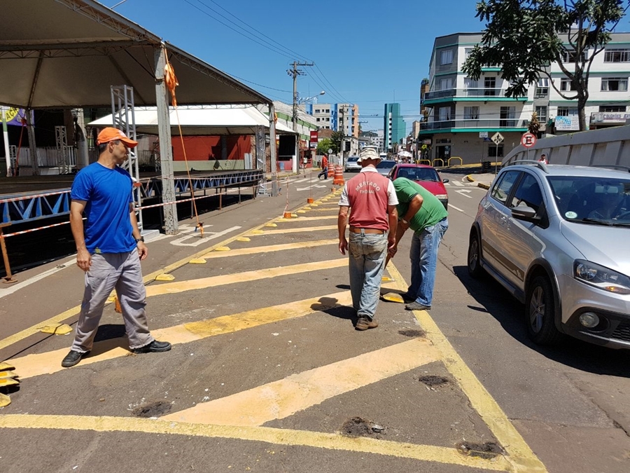Devido ao Carnaval e as estruturas que foram montadas para o evento, o trânsito de Joaçaba, em frente à catedral, terá algumas mudanças nessa semana que antecede o evento. Pode haver ainda novas alterações no trânsito, de acordo com as instalações do carnaval.