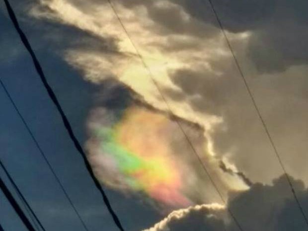Uma nuvem colorida com as cores do arco-íris foi registrada entre Penha e Navegantes, no Litoral Norte de Santa Catarina. O fenômeno é conhecido como “nuvem iridescente”.