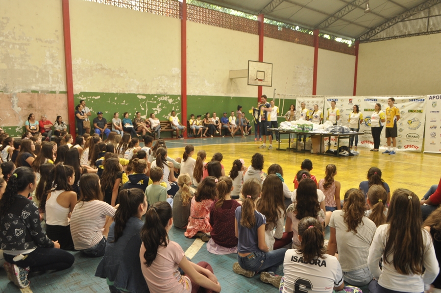 Alunos de quatro núcleos da Associação Joaçabense de Voleibol (AJOV) receberam na manhã deste sábado (18) os uniformes para que possam participar das atividades neste ano, nas categorias Iniciantes, Pré-Mirim, Mirim e Infantil – o projeto envolve crianças e jovens com a faixa etária de 7 aos 15 anos de idade. Em Joaçaba os núcleos estão localizados no Colégio Celso Ramos na área central de Joaçaba, no Colégio Frei Bruno no bairro Santa Tereza, Santíssima Trindade no bairro Cruzeiro do Sul. Além disso, outro núcleo em Campina da Alegria conta com a participação de 40 alunos. Ainda neste ano, outro núcleo deve ser retomado em Vargem Bonita com a participação de aproximadamente 100 alunos.